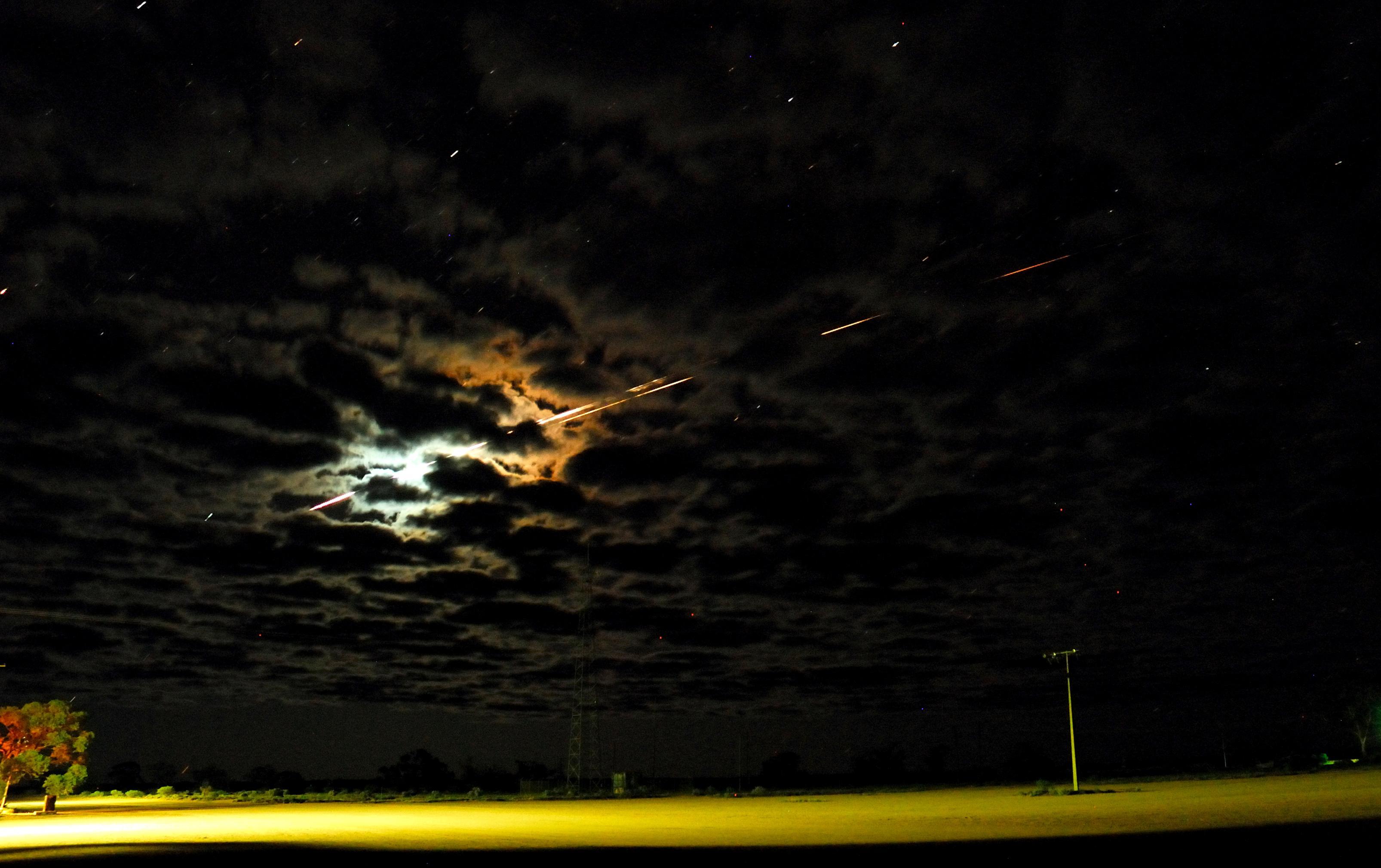 Космический аппарат Хаябуса Японского аэрокосмического агентства оставил полосы на небе, будто по небу полоснули саблей света через облака, во время его возвращения в атмосферу Земли над полигоном Вумера в Австралии. В Кингуня космический аппарат, возвращающийся на Землю, был виден лишь 15 секунд.
