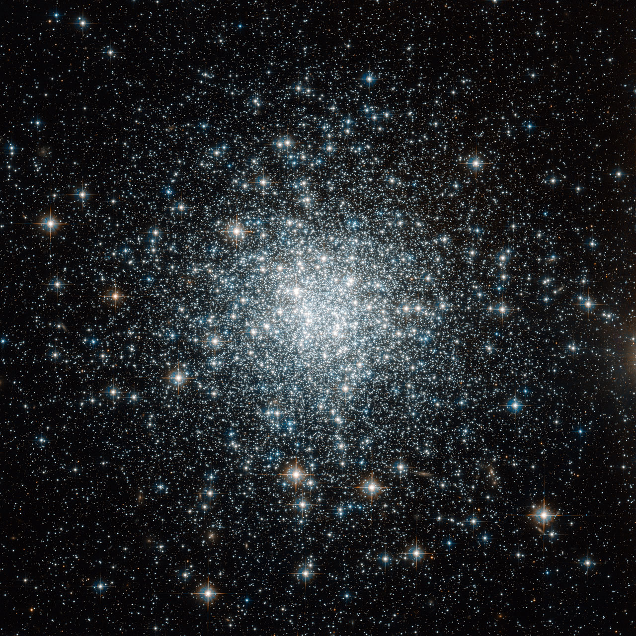 Шаровые звездные скопления окружают ореолом нашу галактику Млечный Путь. Гравитационно связанные эти сферические группы обычно содержат несколько сотен тысяч звезд, древних, намного старше других звезд галактического диска. Действительно, измерение возраста шарового скопления оценивается примерно равным возрасту Вселенной (но ее должен быть старше, чем звезды в нем!). Шаровое звездное скопление NGC 6934 находится на расстоянии примерно 50 000 световых лет от Земли в созвездии Дельфина. На таком расстоянии, это четкая фотография сделана обзорной камерой Хаббла Advanced Camera for Surveys и охватывает область размером около 50 световых лет. Скоплению звезд, по оценкам, около 10 млрд. лет.